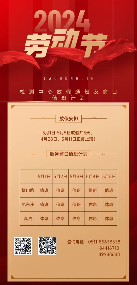 检测中心2024年五一劳动节服务窗口值班计划