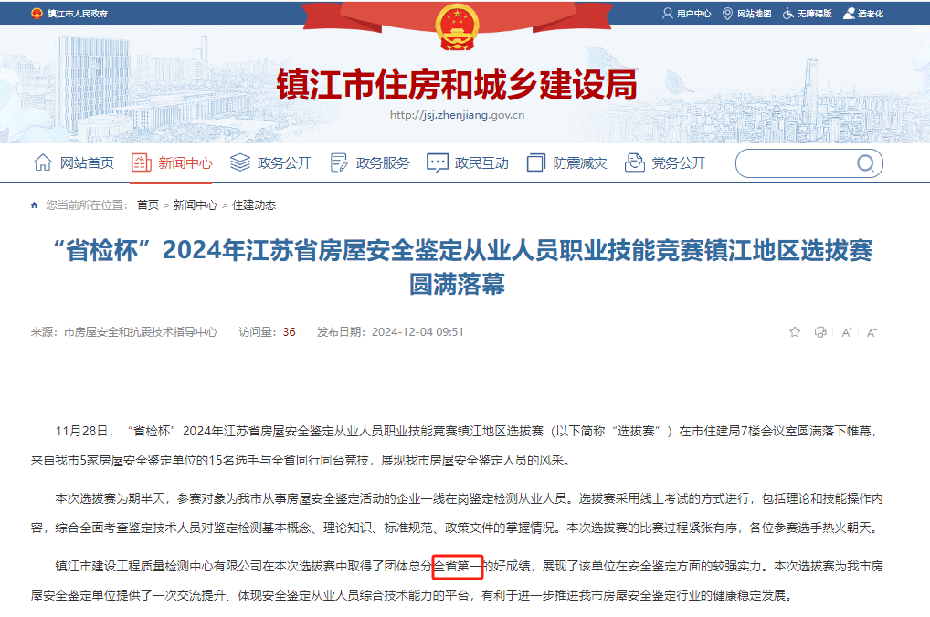 11月28日,孙伟、周凡博、张抟三位同志在市住建局7楼参加了“省检杯”2024年江苏省房屋安全鉴定从业人员职业技能竞赛镇江地区选拔赛,他们在考场上沉着应战,均发挥出了应有的房屋安全理论和知识水平,并获得了全省团体总分第一名的好成绩,体现了检验鉴定科在全省房屋安全鉴定行业优秀的综合技术能力。